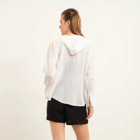 COTTON HOODED VOILE SHIRT