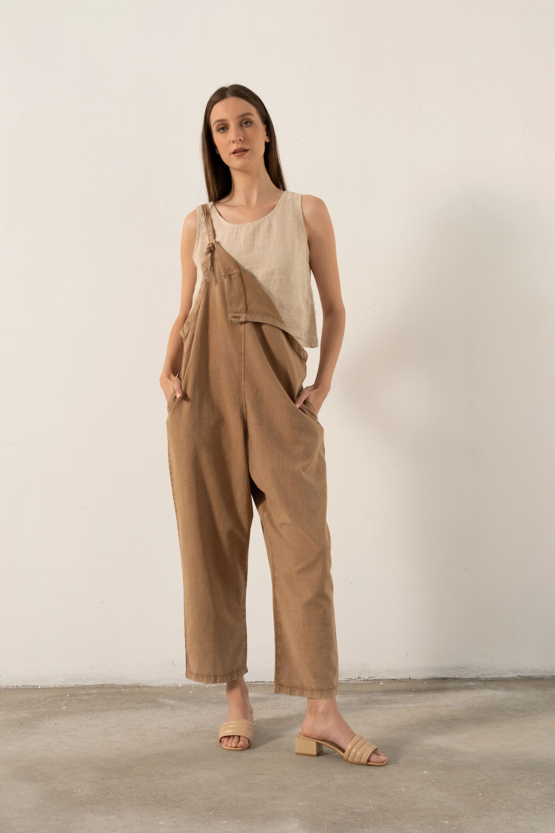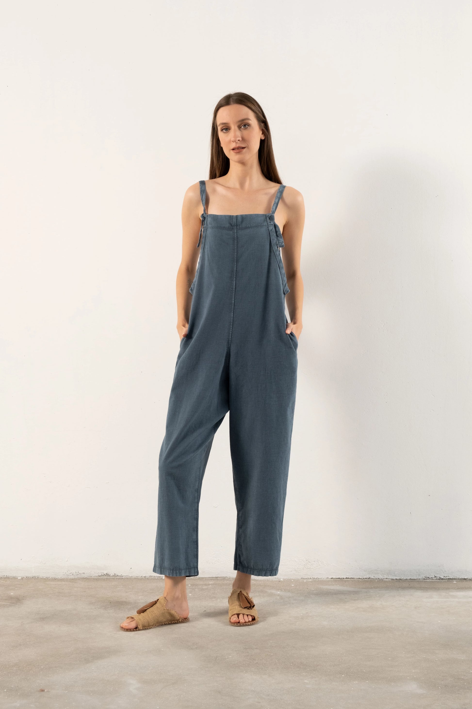 Effortlessly chic and comfortable, our women's woven straight leg jumpsuit is a must-have for any wardrobe. Made from 100% cotton, it is perfect for all seasons and occasions. This standard size jumpsuit is versatile and flattering, making it the ideal choice for any woman on-the-go.